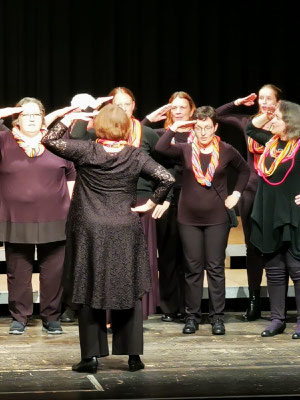 Ute Asal, die erste Vorsitzende der Liedertafel Prien, begann ihre Gesangskarriere 2014 im Polizeichor Dresden und aus diesem Grund war es naheliegend, diesen Chor einmal nach Prien zum gemeinsamen Singen einzuladen. Dass nun noch der Frauenchor der Münchner Polizei dazu kam, war eine Geschichte, die die erste Vorsitzende des Dresdner Chores Anke Sandfoß gemeinsam mit der ersten Vorsitzendes des Münchner Chores Moni König sehr kurzweilig dem Publikum erzählten. Kurz gesagt, die Liedertafel Prien hat einem geplanten Gemeinschaftskonzert der beiden Chöre mit dem Chiemsee Saal eine Location geboten, die Organisation übernommen und ein großes Chorkonzert daraus gemacht.